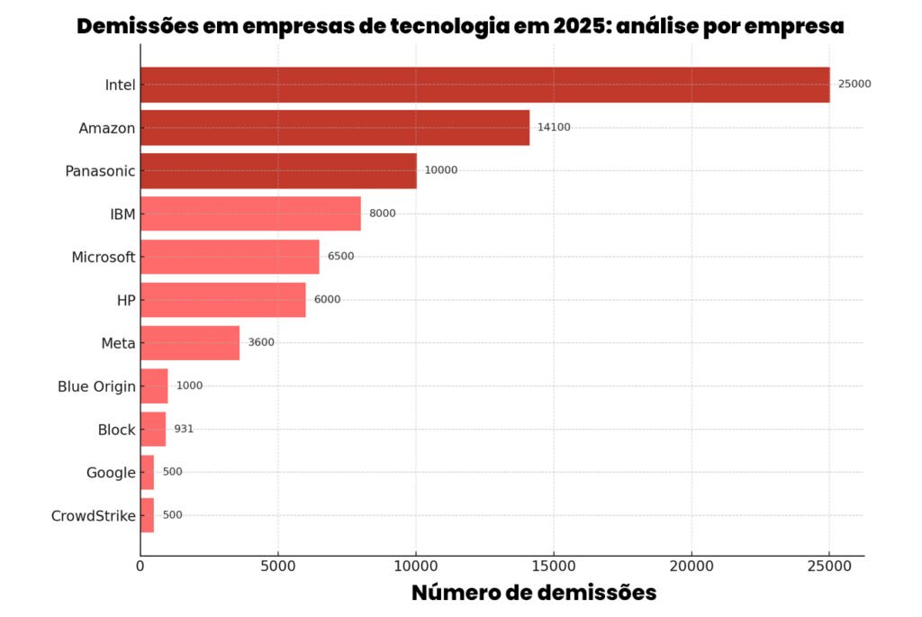 • No primeiro semestre de 2025, mais de 62 000 empregos foram cortados em 284 empresas de tecnologia.
